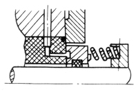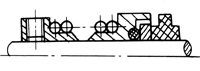 用弹簧压紧密封端面;有时用弹簧传递扭矩由于端面磨损,使弹簧力在10%"-20%范围内变化。制造简单,使用范围受辅助密封圈耐温限制 | 多数密封常用的型式,使用广泛 |